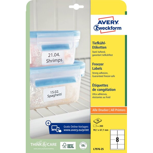 AVERY Zweckform L7976-25 Tiefkühletiketten in weiß. • Trägermaterial: Papier • Klebung: permanent
