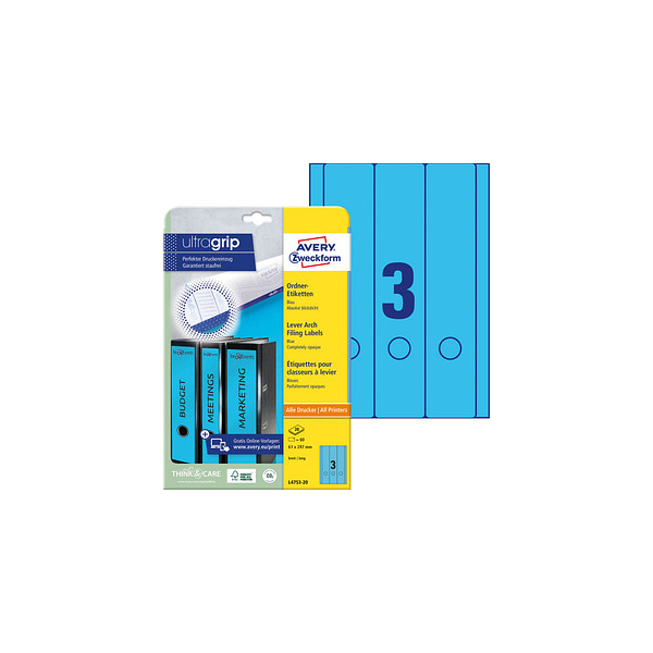 AVERY Zweckform Rückenschilder ultragrip L4753-20, blau, breit/lang, 61x297mm, selbstklebend, permanent
