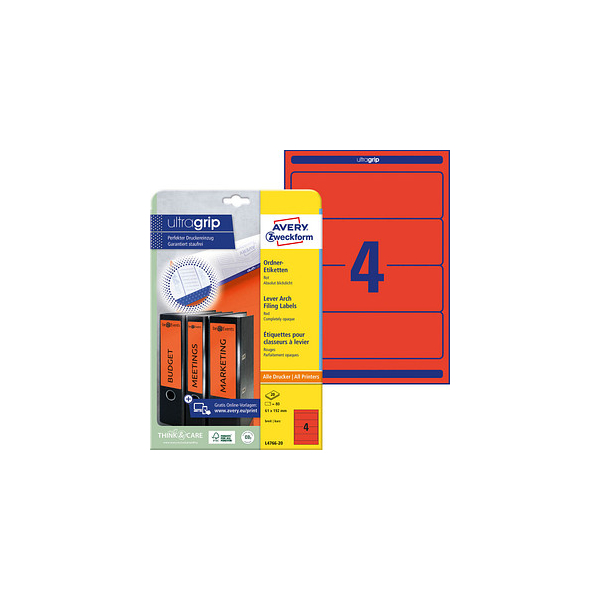 AVERY Zweckform Rückenschilder ultragrip L4766-20, rot, breit/kurz, 61x192mm, selbstklebend, permanent