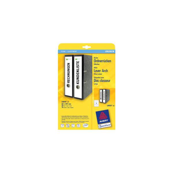 AVERY Zweckform Rückenschilder ultragrip L6059-25, weiß, breit/lang, 59x297mm, selbstklebend, permanent