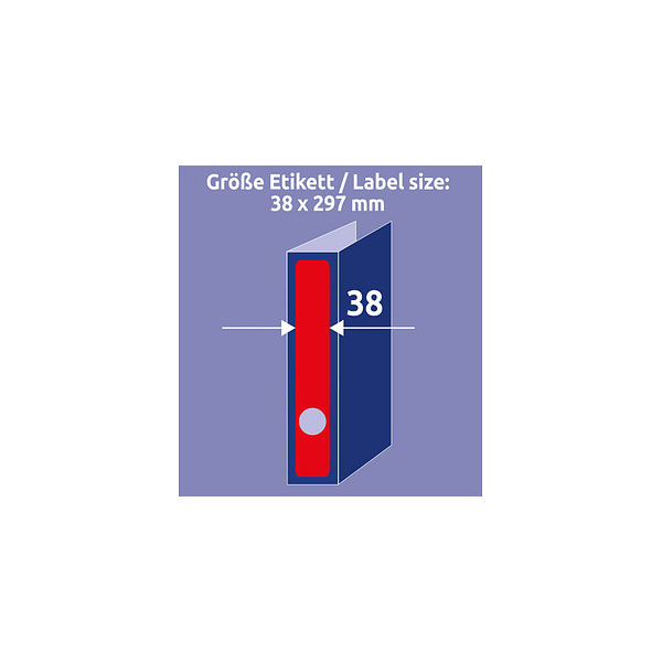 Die roten Rückenschilder im Format 38 x 297 mm (schmal/lang) bieten eine permanente Klebung und haften dauerhaft sicher auf allen gängigen schmalen Standard Ordnern. Dank der ultragrip Technologie können Sie sich auf einen ultrapräzisen Druckereinzug und einen staufreien Druckerdurchlauf verlassen. Dies ermöglicht Ihnen ein schnelles und stressfreies Arbeiten.