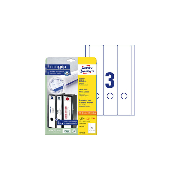 AVERY Zweckform selbstklebende Rückenschilder ultragrip L4759-25 weiß breit/lang 61x297mm (BxH) permanent