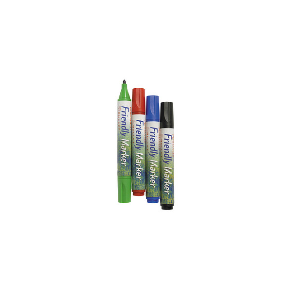 Die Friendly Fine Marker zeichnen sich durch ihre langlebige und wasserfeste Tinte aus, die auch auf schwierigen Oberflächen zuverlässig haftet. Das 4-farbig sortierte Set enthält die Farben schwarz, blau, rot und grün und ermöglicht Ihnen kreatives Arbeiten mit einer Strichstärke von 1,5-3mm. Ideal für präzise und saubere Schriftzüge.