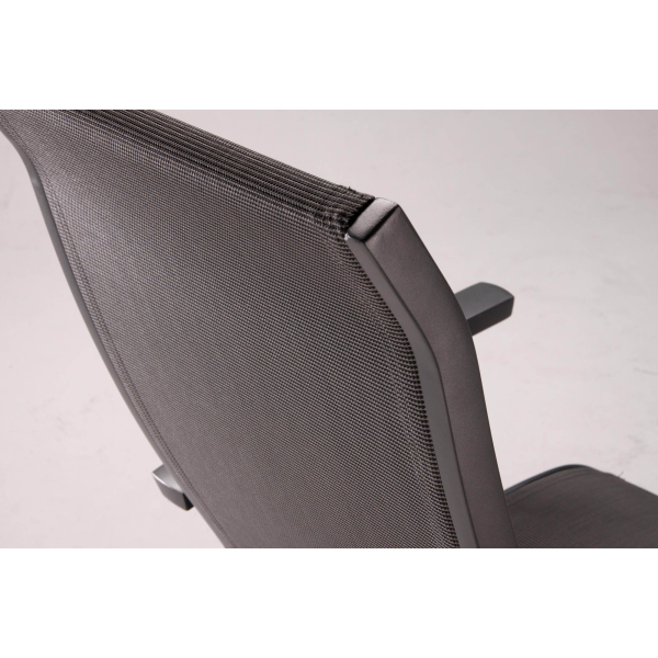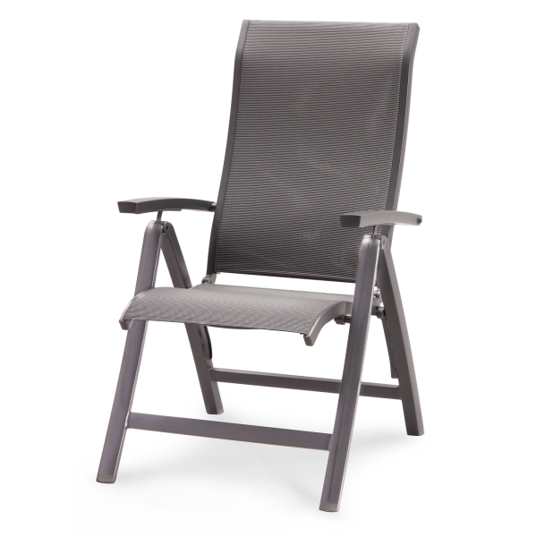 Das Gestell, einschließlich der Armlehnen und der Gelenkteile, besteht komplett aus Aluminium. Dies macht den Sessel absolut witterungs- und korrosionsbeständig und leicht im Handling. Der Bezug besteht aus einer Bespannung aus reißfestem und atmungsaktivem Textilene-Gewebe, die Rückenfläche besitzt eine Doppel-Bespannung. Diese verleiht dem Design eine einzigartige Note und bietet fantastischen Sitzkomfort. Die Rückenlehne ist mehrfach verstellbar.
