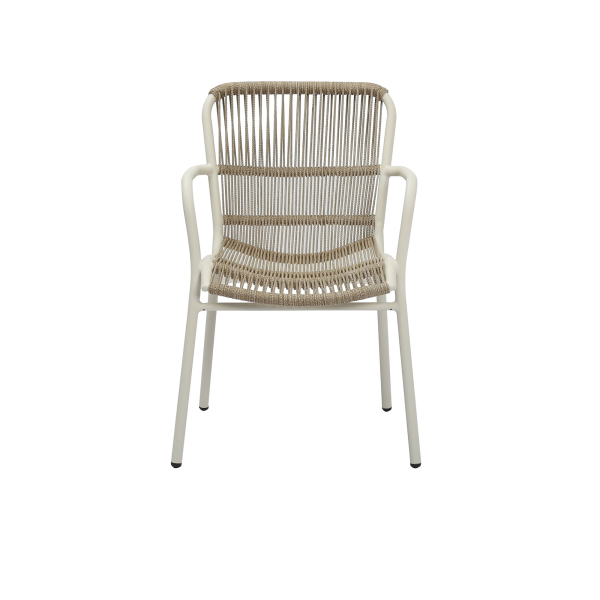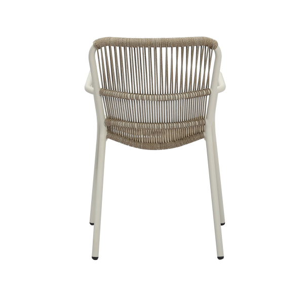 Werten Sie Ihr Esserlebnis im Freien mit dem Fellow-Stuhl auf, der Eleganz und Komfort vereint. Sein schlankes Gestell und die Sitz- und Rückenlehne aus geflochtenem Seil verleihen ihm einen anspruchsvollen und gleichzeitig legeren Look. Dank der Stapelbarkeit lässt er sich platzsparend verstauen, und sein modernes Design fügt sich harmonisch in jede Terrasse oder jeden Garten ein.