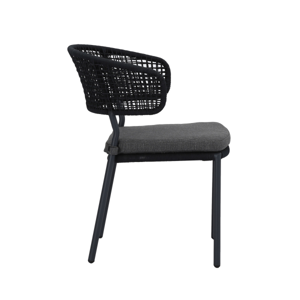 Der Spitz-Gartenstuhl vereint klassischen Charme mit modernem Komfort. Gefertigt mit einem robusten Rahmen, besticht dieser Stuhl durch eine formschöne Sitzfläche und Rückenlehne aus gewebtem Seil, die den Witterungseinflüssen im Freien standhalten. Ein passendes Sitzkissen sorgt für zusätzlichen Komfort durch extra Polsterung. Sein durchdachtes Design garantiert bequemes und entspanntes Sitzen und macht ihn zu einer stilvollen und einladenden Wahl für jede Terrasse oder jeden Garten.