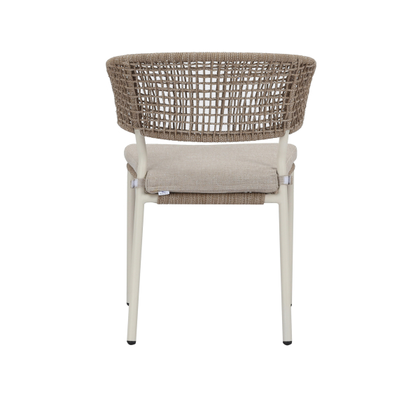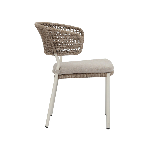 Der Spitz-Gartenstuhl vereint klassischen Charme mit modernem Komfort. Gefertigt mit einem robusten Rahmen, besticht dieser Stuhl durch eine formschöne Sitzfläche und Rückenlehne aus gewebtem Seil, die den Witterungseinflüssen im Freien standhalten. Ein passendes Sitzkissen sorgt für zusätzlichen Komfort durch extra Polsterung. Sein durchdachtes Design garantiert bequemes und entspanntes Sitzen und macht ihn zu einer stilvollen und einladenden Wahl für jede Terrasse oder jeden Garten.
