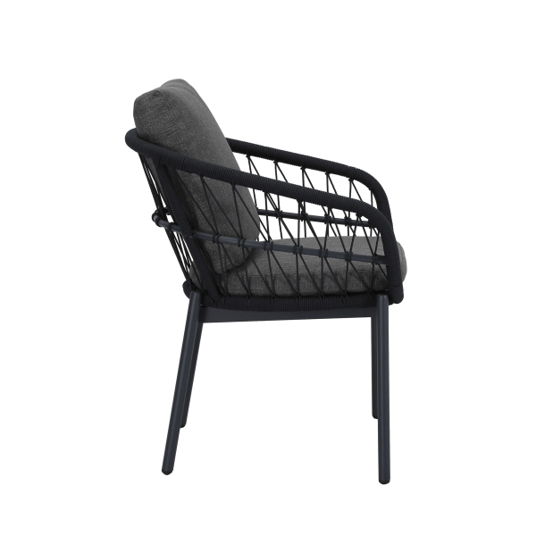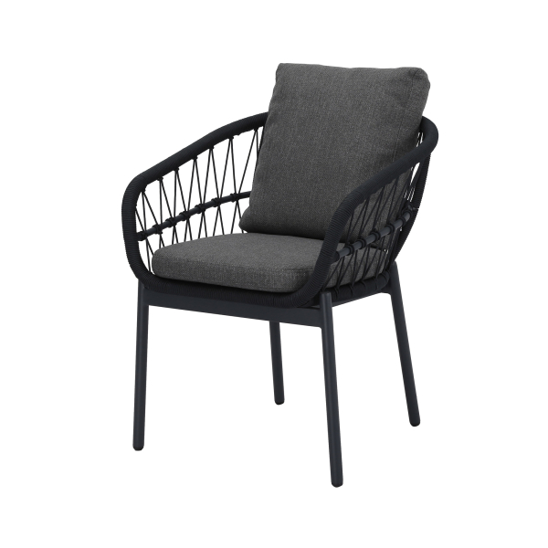 Der Tropea-Stuhl verleiht Ihrem Essbereich im Freien mit seinem eleganten Design einen Hauch von Stil. Sein robustes Gestell in Kombination mit Sitzfläche und Rückenlehne aus geflochtenem Seil garantiert Langlebigkeit und ein ansprechendes Design. Die farblich abgestimmten Kissen sorgen für zusätzlichen Komfort. Dieser Stuhl ist ideal, um entspannte Mahlzeiten zu genießen und Ihre Terrasse oder Ihren Garten optisch aufzuwerten.