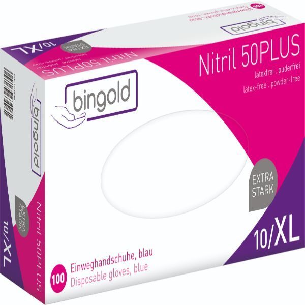 Bingold Einweghandschuhe Nitril 50Plus, Nitril, lebensmittelecht, blau, Größe 10 / XL,