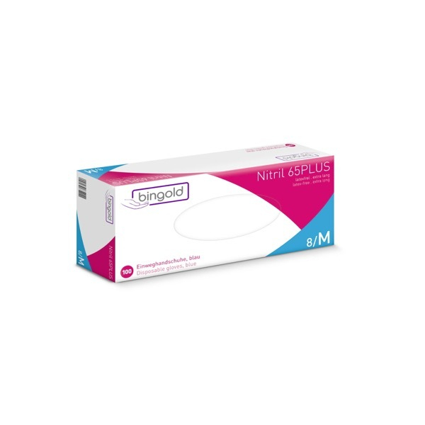 Bingold Einweghandschuhe Nitril 65Plus, Nitril, lebensmittelecht, blau, Größe 9 / L,