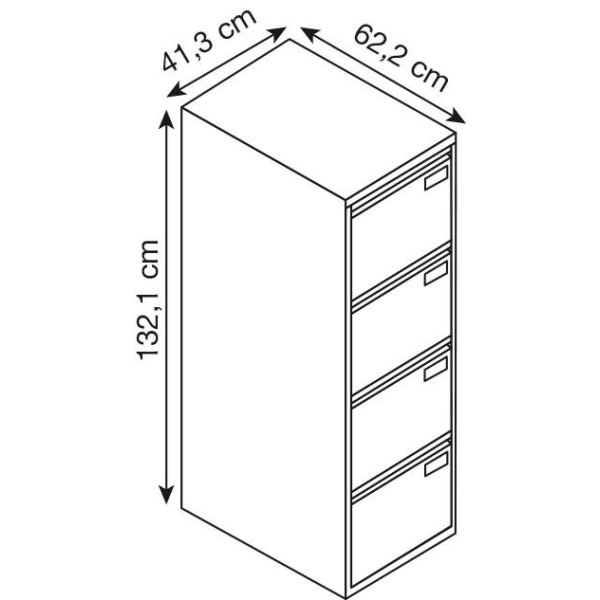 Mit einer Breite von 41,3 cm, einer Höhe von 132,1 cm und einer Tiefe von 62,2 cm bietet der Schrank ausreichend Platz für all Ihre Unterlagen im DIN A4-Format.