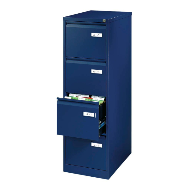 Der Bisley HR-Schrank Einbahnig/4Sch.Blau ist ideal für den Einsatz im Büro oder Home-Office geeignet.