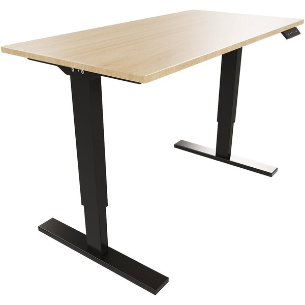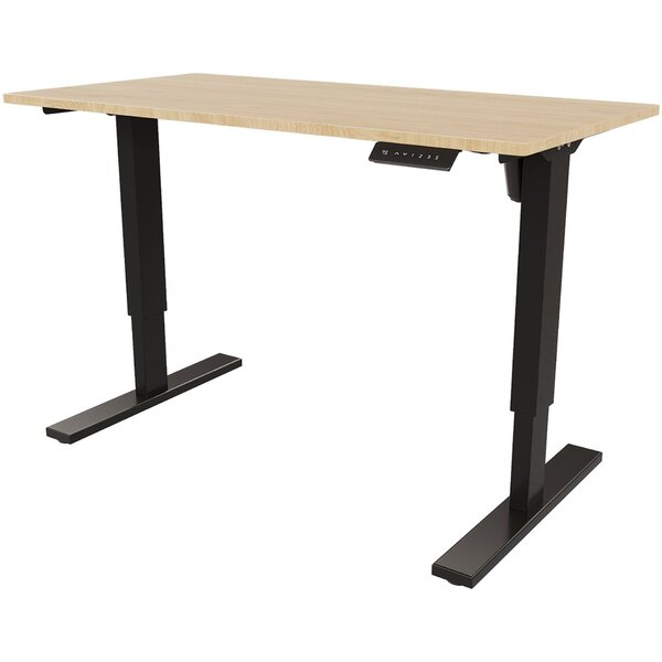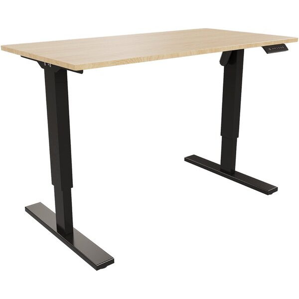 Schreibtisch E-StarterTech, elektrisch höhenverstellbar, 72,5-114,5cm (H), 160x60cm (BxT), rechteckig, ahorn / schwarz