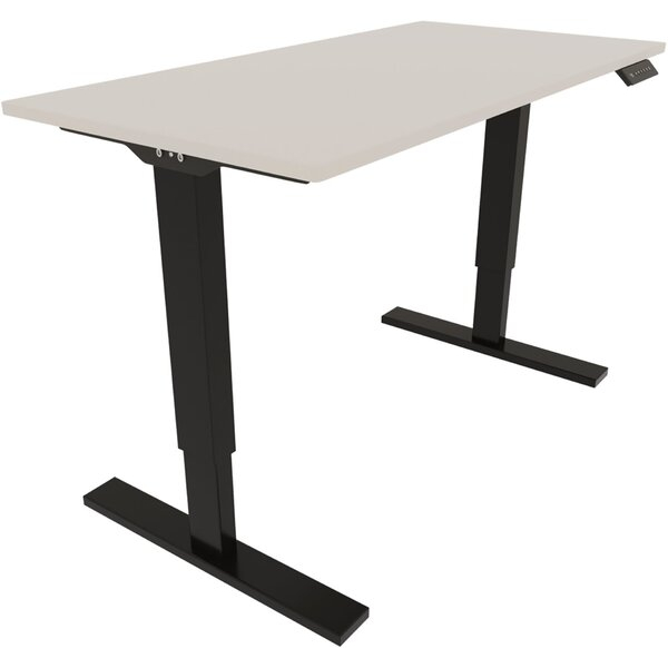 Schreibtisch E-StarterTech, höhenverstellbar, 72,5-114,5cm (H), 140x60cm (BxT), rechteckig, lichtgrau / schwarz