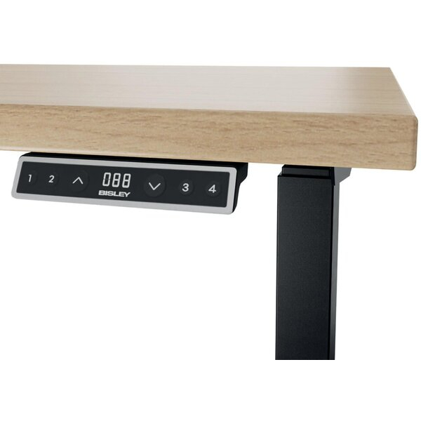 Jetzt Bisley Schreibtisch E-WonderTech, elektrisch höhenverstellbar, 65,5-130,5cm (H), 140x60cm (BxT), rechteckig, eiche / weiß günstig kaufen.
