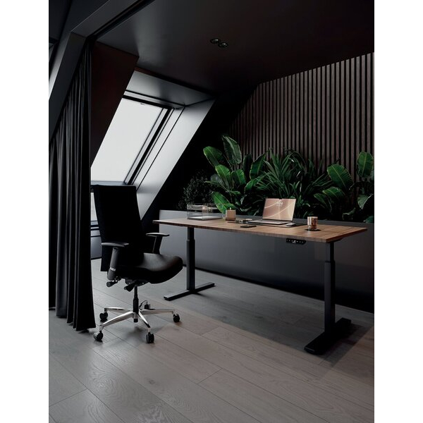 Bisley Schreibtisch E-WonderTech, elektrisch höhenverstellbar, 65,5-130,5cm (H), 180x80cm (BxT), rechteckig, nussbaum / schwarz