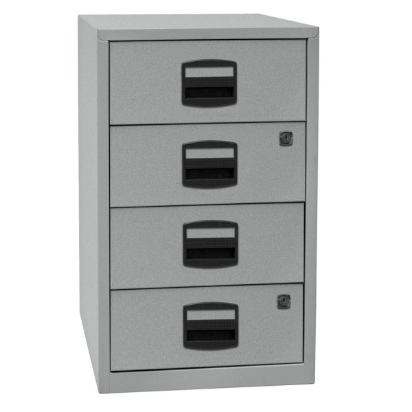 Bisley Schubladenschrank Home PFA4S355, Stahl abschließbar, 4 Schubladen, A4, 41,3 x 67,2 x 40 cm, silber