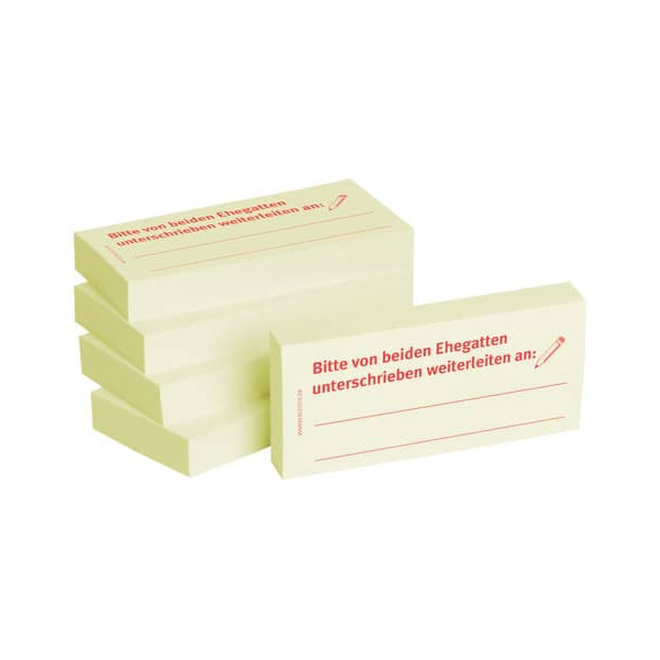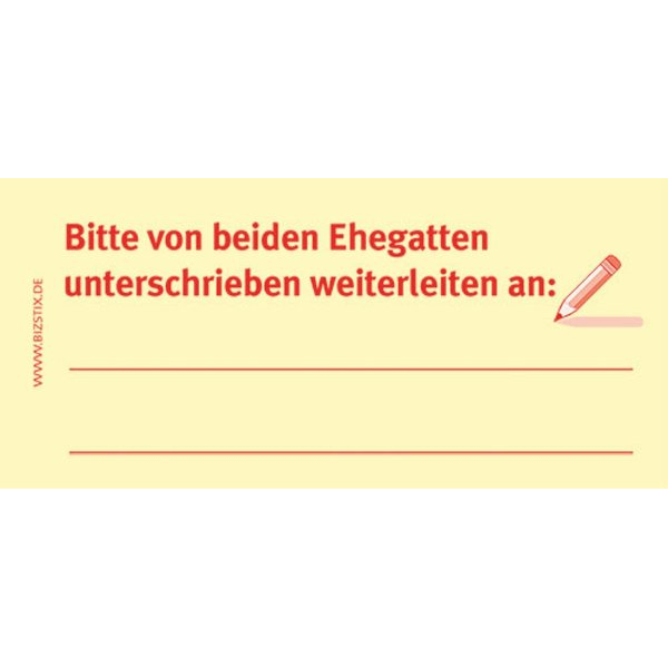BIZSTIX Haftmarker 1301010104, Business, 75x35mm, gelb, "Bitte von beiden Ehegatten unterschreiben weiterleiten an:", rechteckig