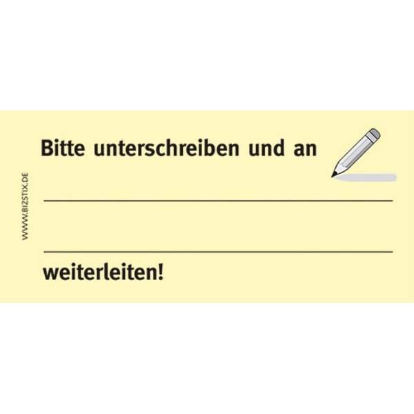 BIZSTIX Haftmarker 1301010111, Business, 75x35mm, gelb, "Bitte unterschreiben und an ... weiterleiten", rechteckig