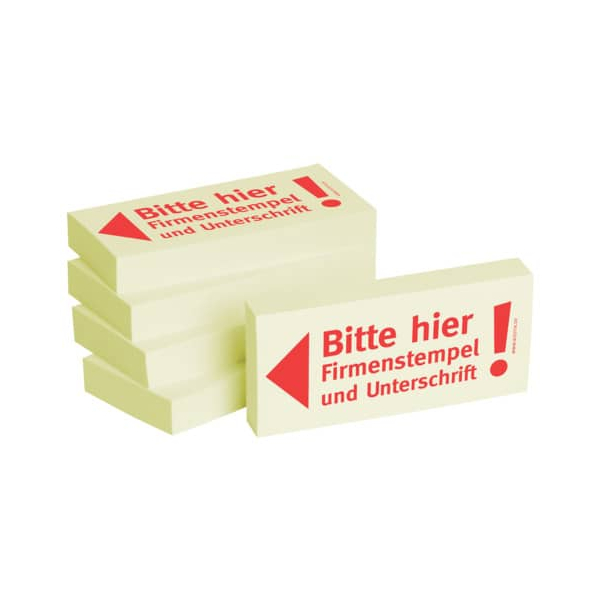 BIZSTIX Haftmarker 1301010125, Business, 75x35mm, gelb, "Bitte hier Firmenstempel und Unterschrift", rechteckig