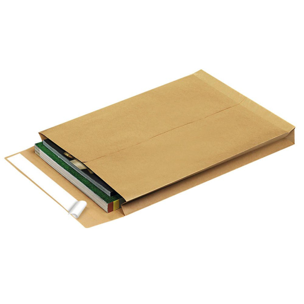 • Format: B4 • Maße: 250x353mm • mit Falte (20mm) • Klebung: haftklebend mit Abziehstreifen • Farbe: braun • Material: Papier 120 g/m² • kurze Seite offen
