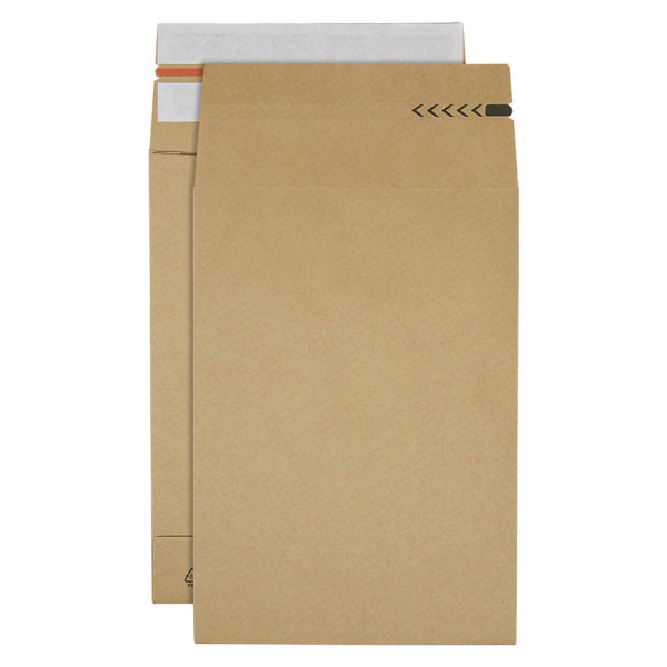 • Format: B4 • Maße: 250x353mm • mit Falte (50mm) • Klebung: haftklebend mit Abziehstreifen • Farbe: braun • Material: Papier 120 g/m² • reißfest • kurze Seite offen • mit Aufreißhilfe