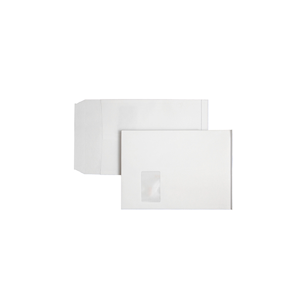MailMedia Faltentaschen 30015671, C4, mit Fenster, haftklebend, 20mm-Falte, 120g, weiß