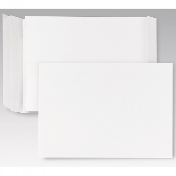 Bong Faltentaschen Posthorn, C4, ohne Fenster, haftklebend, 40mm-Falte, 130g, weiß