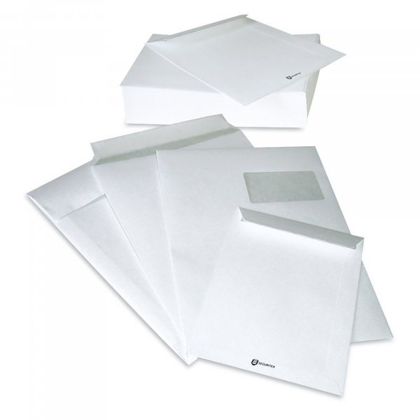 Faltentaschen Securitex Expander 00014212, C4, ohne Fenster, haftklebend, 38mm-Falte, reißfest, wasserfest, 130g, weiß