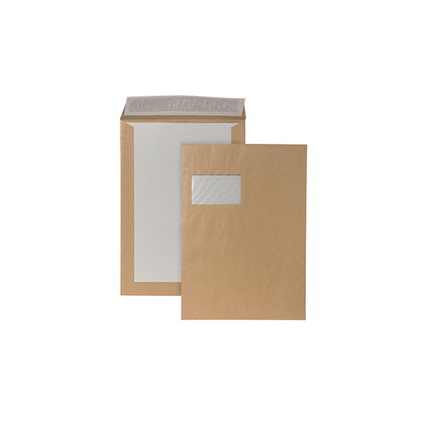 • Format: C4 • Maße: 229x324mm • Klebung: haftklebend mit Abziehstreifen • Farbe: braun • Material: Papier/Karton 120 g/m² • mit Papprückwand • kurze Seite offen