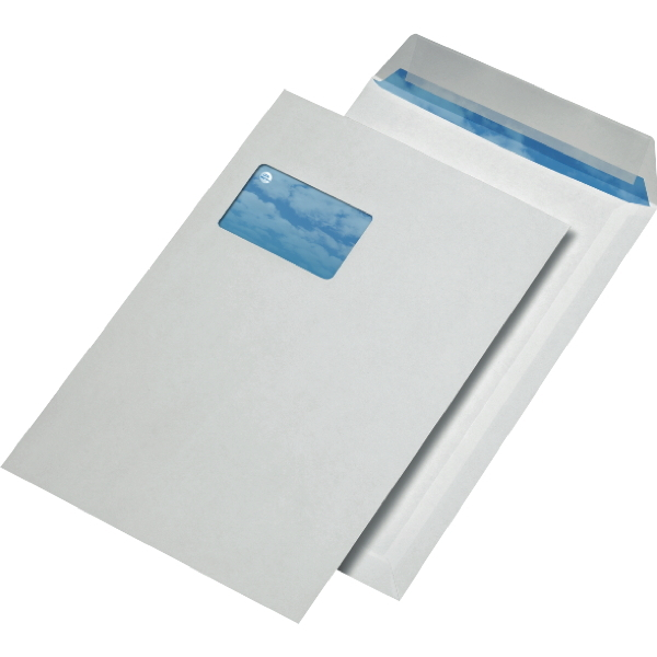 Versandtaschen Premium, C4, mit Fenster, haftklebend, 100g, weiß