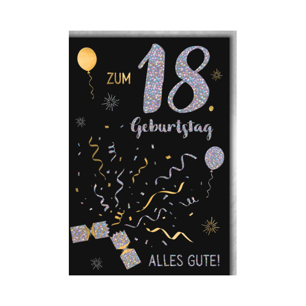 Feiern Sie den besonderen Meilenstein des 18. Geburtstags mit den bunten Geburtstagskarten 5020-24080 von Braun und Company. Diese Karte im Format 11,5 x 17 cm bietet ein modernes und fröhliches Design, das ideal ist, um herzliche Glückwünsche zu übermitteln und die Volljährigkeit stilvoll zu zelebrieren.