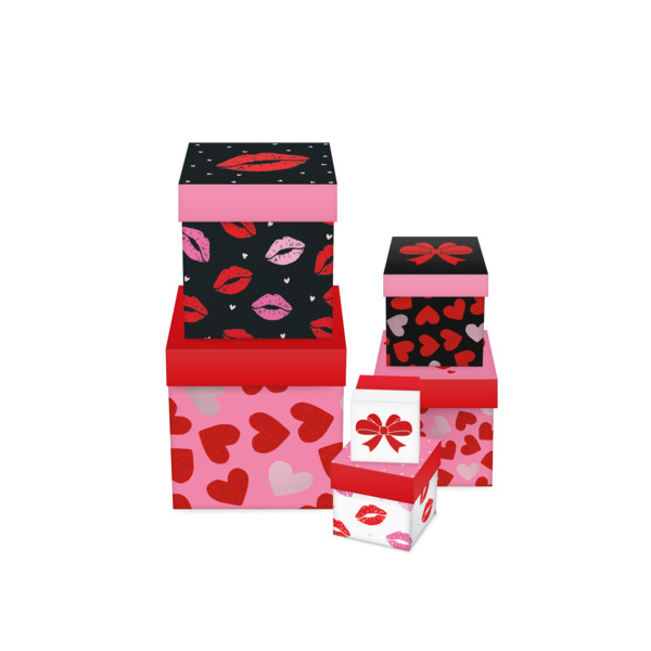 Der 6-teilige Geschenkkarton Liebe überzeugt durch Vielfalt und Eleganz. Das Set enthält sechs Kartons in verschiedenen Größen von 5,6 x 5,6 x 5,3 cm bis 15,6 x 15,6 x 15,8 cm, perfekt abgestimmt für kleine bis mittelgroße Geschenke. Innen sind die Kartons mit einem liebevollen Innendruck versehen, außen glänzen sie dank hochwertiger Heißfolienveredelung. Die 3 verschiedenen, sortierten Farben verleihen jedem Geschenk eine besondere Note. Ideal für stilvolle und liebevolle Geschenkverpackungen.