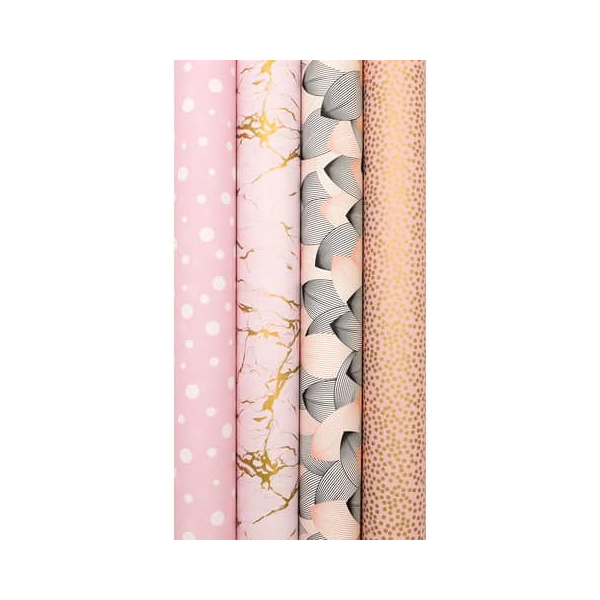 Braun und Company Geschenkpapier Sweet Rose 1330-24363, 4 verschiedene, 70cm x 2m, roséton