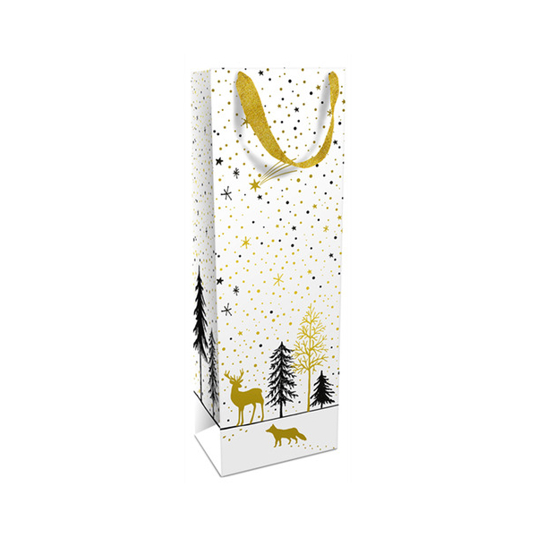 Diese Geschenktasche aus der Serie Modern Wintertime besticht durch ihre schlichte Eleganz und die Kombination aus mattierter Oberfläche und glänzenden Akzenten. Das goldene Band verleiht der Tasche einen Hauch von Luxus, während die Heißfolienprägung das Gesamtbild abrundet.
