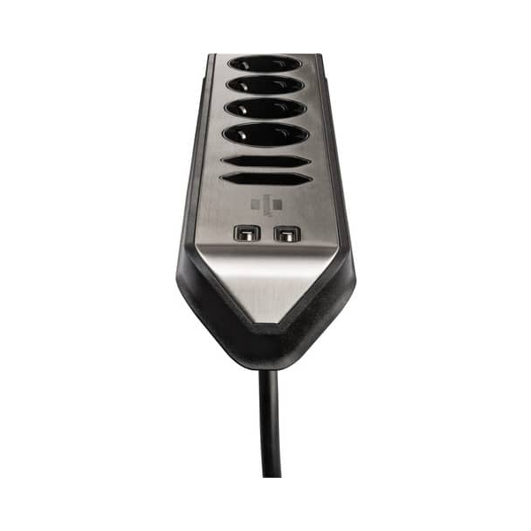 Sie besticht durch ihre Ausführung mit 6 Schutzkontakt-Steckdosen in einer 45° Anordnung und 2 Euro-Steckdosen in einer 90° Anordnung. Das 36,5 cm lange Kabel hat eine Kabellänge von 2,0 m und besteht aus hochwertigem PVC. Die Steckdosenleiste verfügt außerdem über 2 USB-Charger.