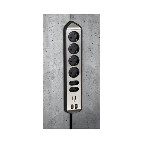 BRENNENSTUHL präsentiert Ihnen die Steckdosenleiste 1153590610 Estilo. Diese silberne Steckdosenleiste mit schwarzem Kabel eignet sich perfekt für den Haushalt.