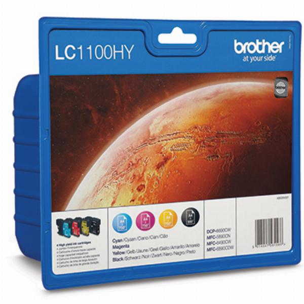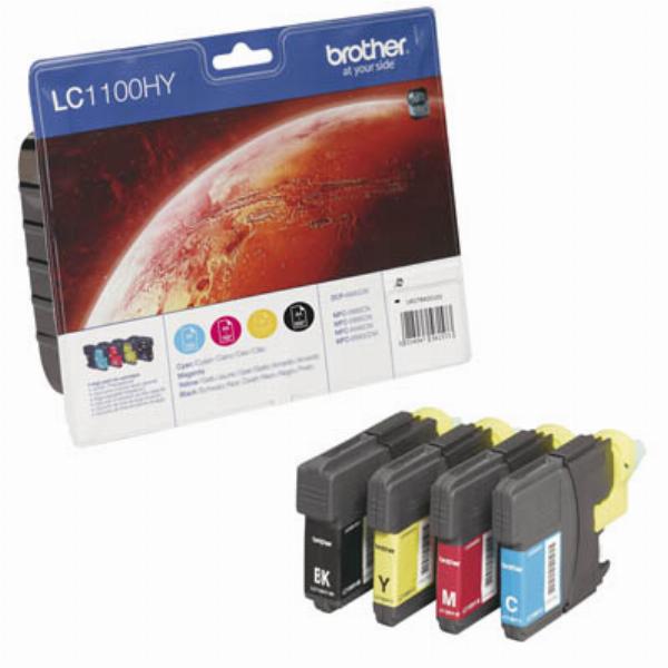 Brother original Druckerpatrone LC1100HYVALBPDR • Multipack: schwarz/cyan/magenta/gelb • Druckleistung: ca. 900 / 3x 750 Seiten