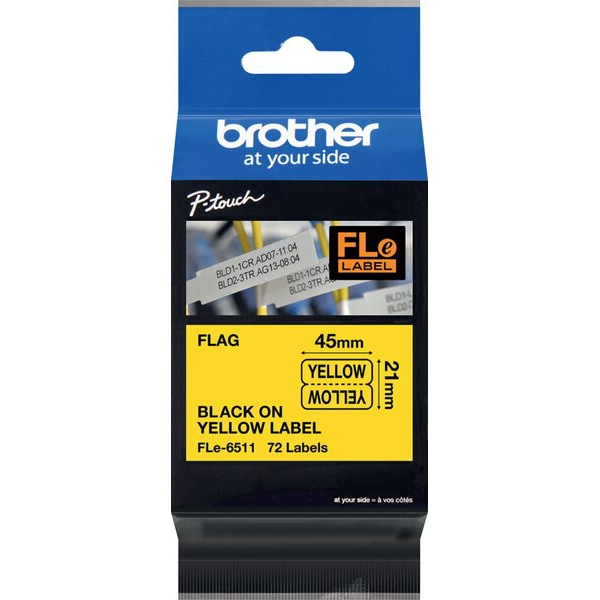 Brother Einzelfähnchen Fle-6511 schwarz auf gelb 45 x 21 mm FLE6511