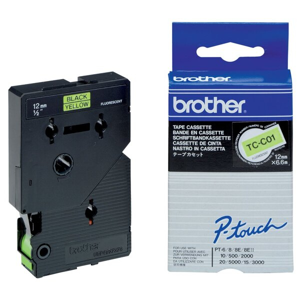 Brother P-touch Schriftband TC-C01 12mm x 7,7m schwarz/signalgelb laminert selbstklebend