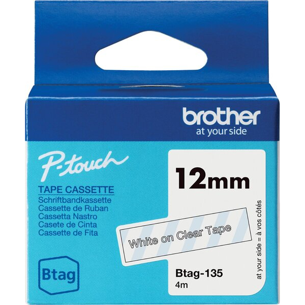 Brother Schriftband Btag Btag-133 BTAG135, 12 mm weiß auf transparent