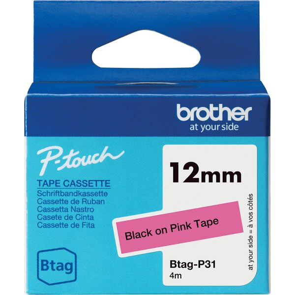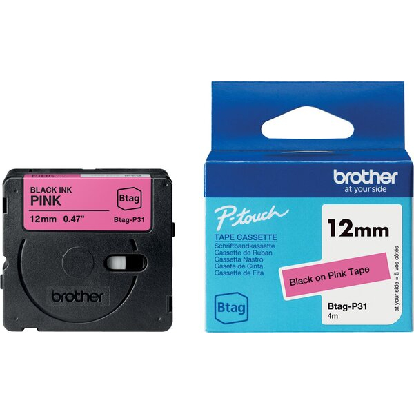 Brother Schriftband Btag Btag-P31 BTAGP31, 12 mm schwarz auf pink