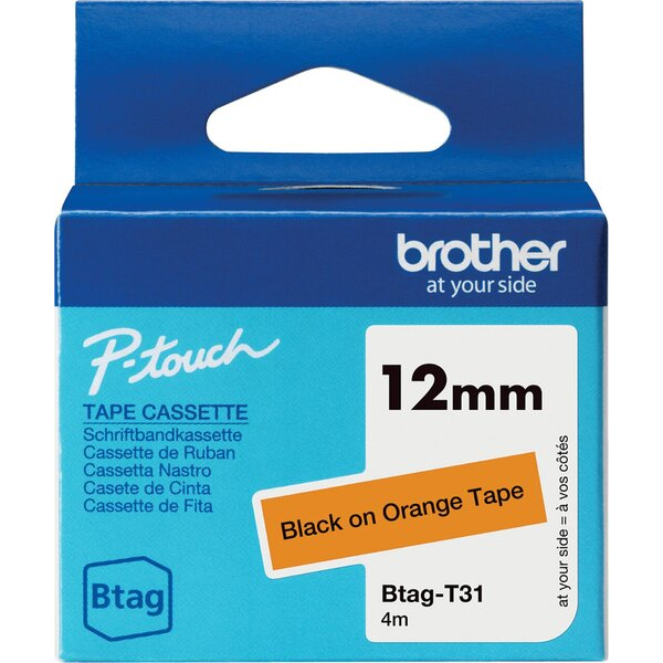 Das Schriftband Original Btag Btag-T31 BTAGT31 ist ein vielseitig einsetzbares Produkt von Brother, das Ihnen perfekte Lesbarkeit bei gleichzeitig hoher Beständigkeit bietet. Die Kombination aus schwarz auf orange sorgt für eine auffällige und gut lesbare Beschriftung.