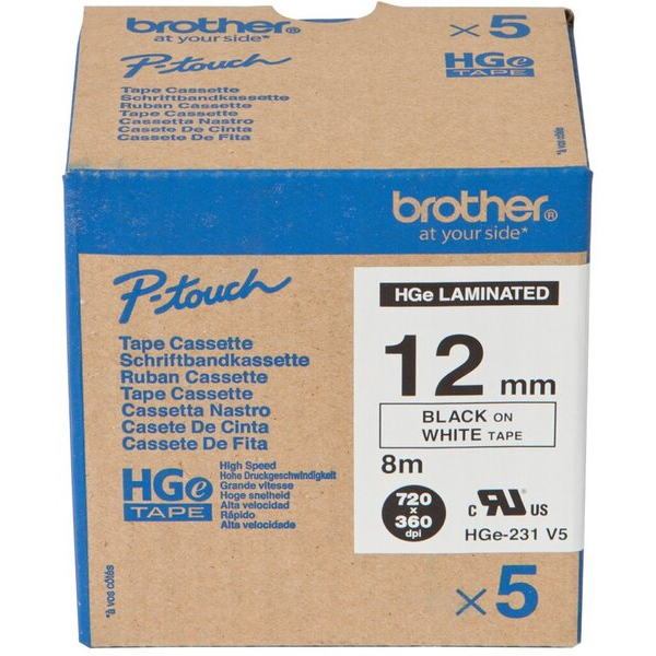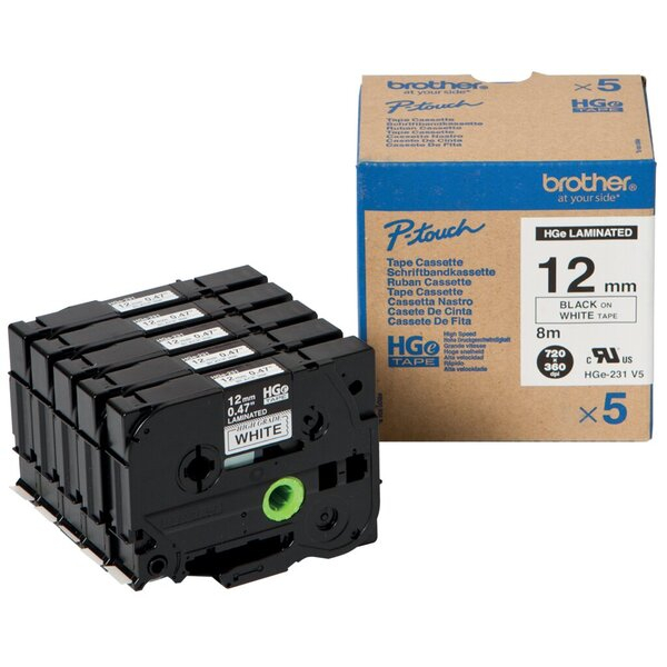 P-touch Schriftbandkassette HGe-231V5 12 mm x 8 m (B x L) weiß schwarz /Pack.