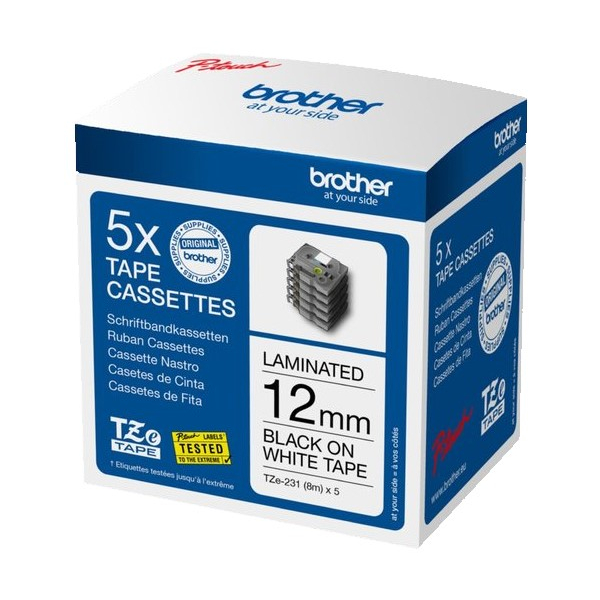 Brother Schriftbandkassette TZE231M5 8mx12mm sw auf ws 5 St./Pa