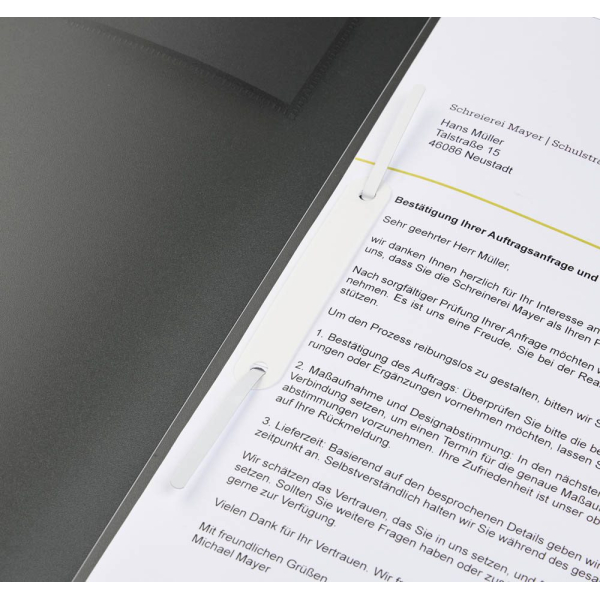 Dank des transluzenten Vorderdeckels können Sie Ihre Dokumente stilvoll präsentieren und schnell identifizieren. Der Schnellhefter ist ideal für das Büro, die Schule oder den heimischen Arbeitsplatz und sorgt für Ordnung in Ihrem Unterlagenchaos.