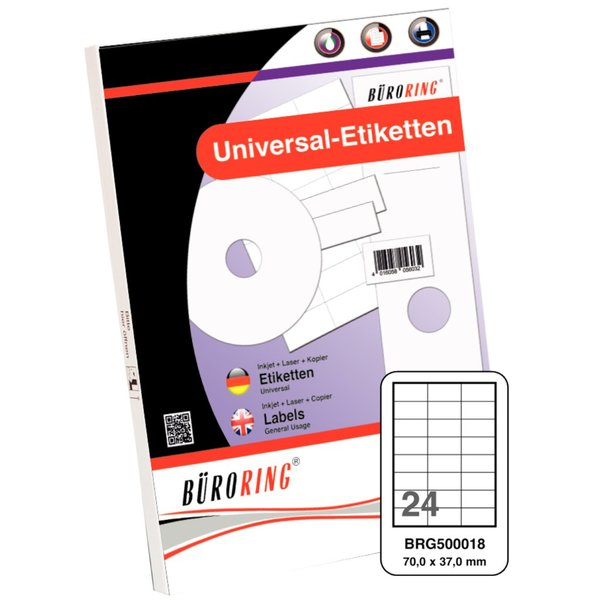 Büroring Etiketten 500018, weiß, 70x37mm, rechteckig