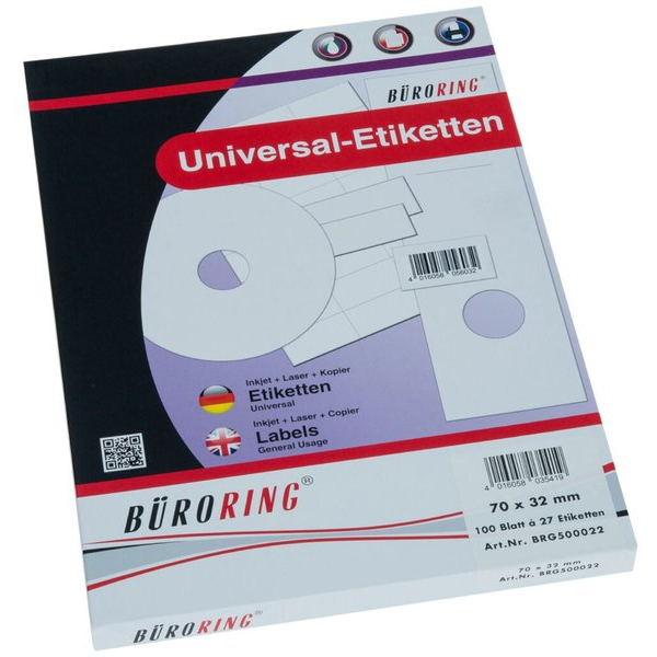 Entdecken Sie die selbstklebenden Universaletiketten von Büroring, die perfekt für alle Ihre Etikettierungsbedürfnisse sind. Mit einer Größe von 70x32mm und in klassischem Weiß sind diese Etiketten nicht nur funktional, sondern auch vielseitig einsetzbar. Sie können sie problemlos auf allen gängigen Laser-, Farblaser-, Inkjetdruckern und Kopierern verwenden.