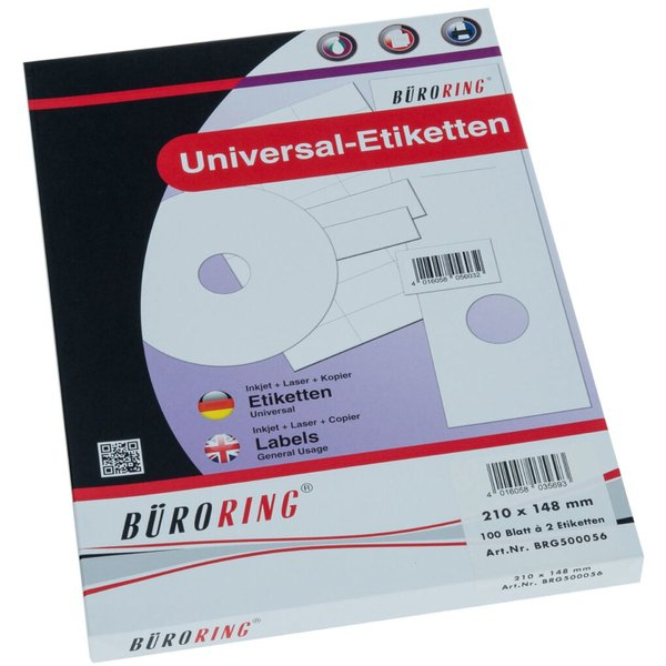 Büroring Etiketten 500056, weiß, 210x148mm, rechteckig