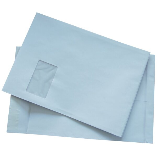 MailMedia Faltentaschen 30015671, C4, mit Fenster, haftklebend, 20mm-Falte, 120g, weiß